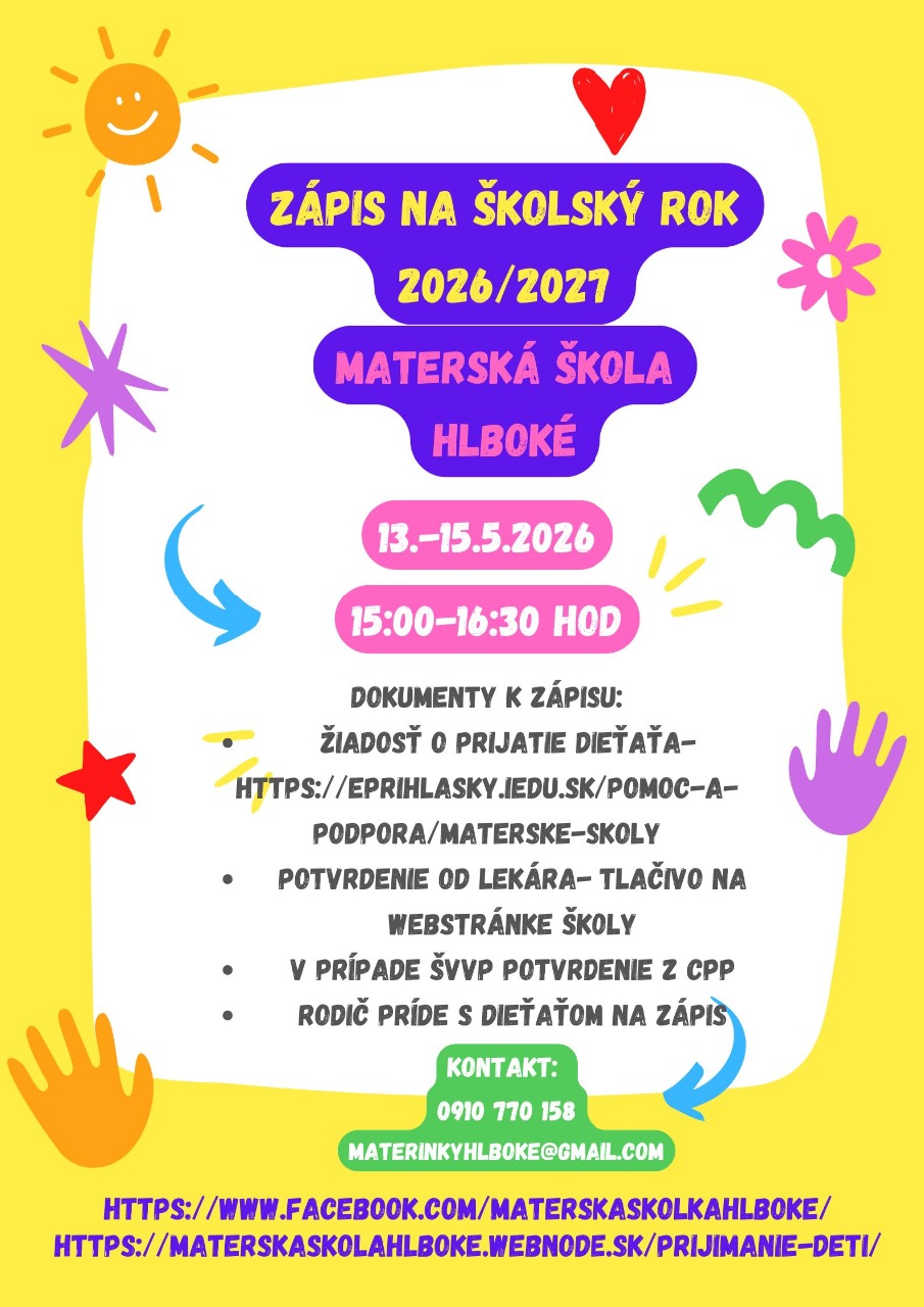 - info o termínoch a spôsobe prihlasovania na školský rok 2026/2027 pripravujeme na základe informácií z MŠVVMSR.